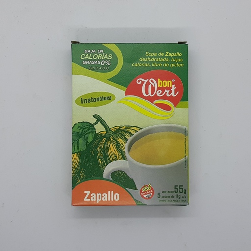 Sopa instantánea de zapallo granulada deshidratada. bajas calorías libre de gluten instantánea 0% trans. Se destaca por su agradable sabor y color, que al momento de saborear, manifiesta en pleno sus propiedades naturales.