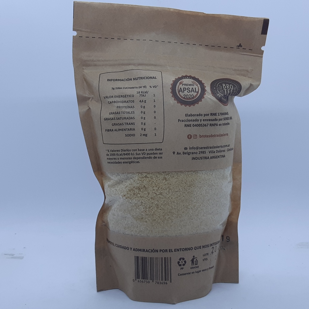 Sin agregados químicos ni procesos de refinación. Producto apto Kosher, y con certificado orgánico.