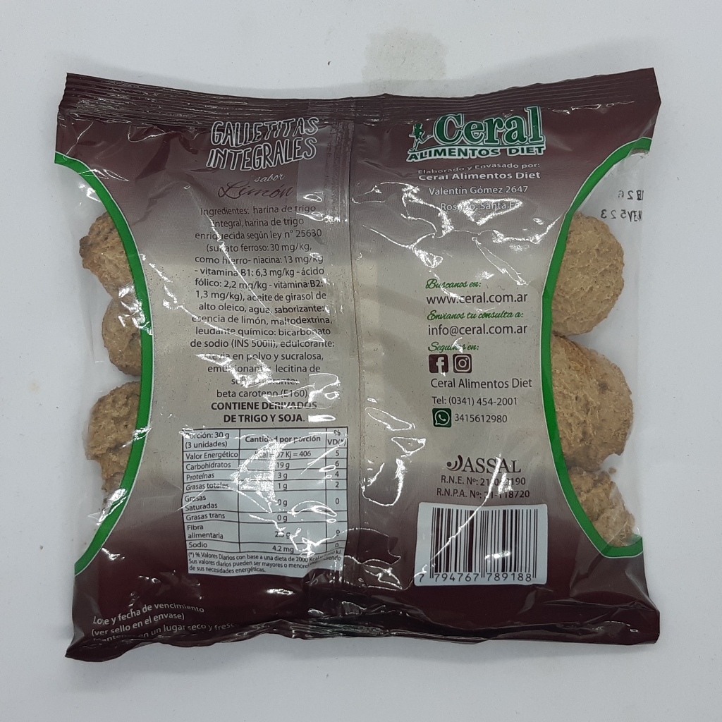 Ceral Galletitas Integrales dulces Limon