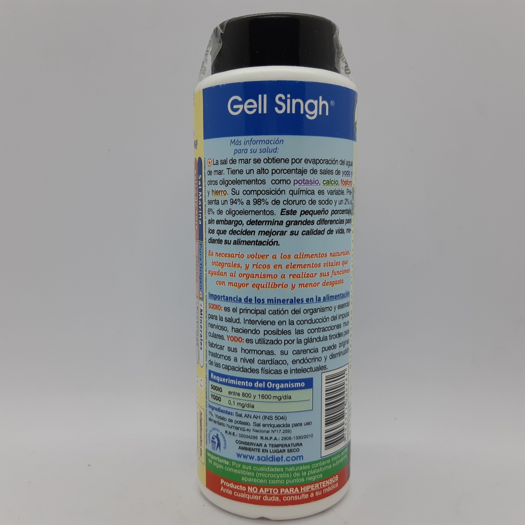 La sal marina se obtiene por evaporación del agua de mar. Tiene un alto porcentaje de sales de yodo y otros oligoelementos como potasio, calcio, fósforo y hierro.