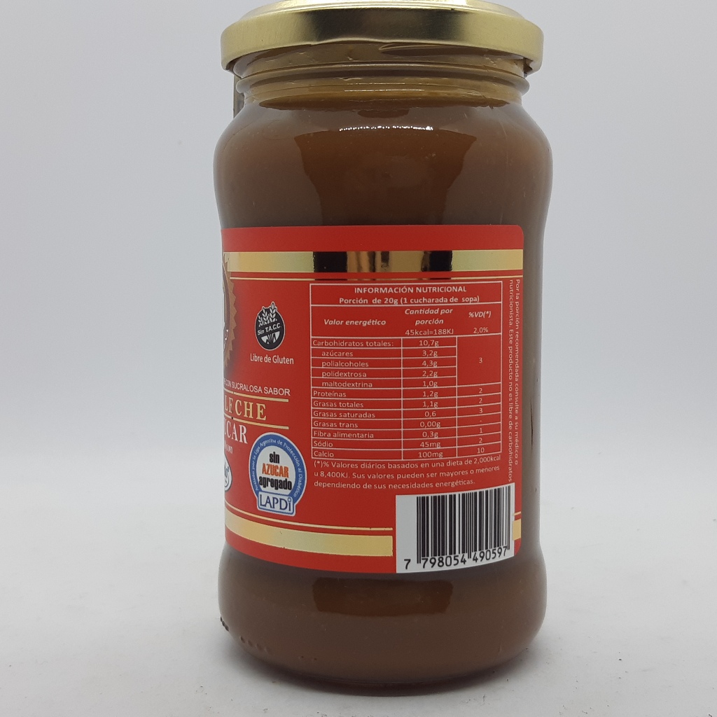 Dulce de Leche Sin Azúcar endulzado con Splenda. SIN TACC.