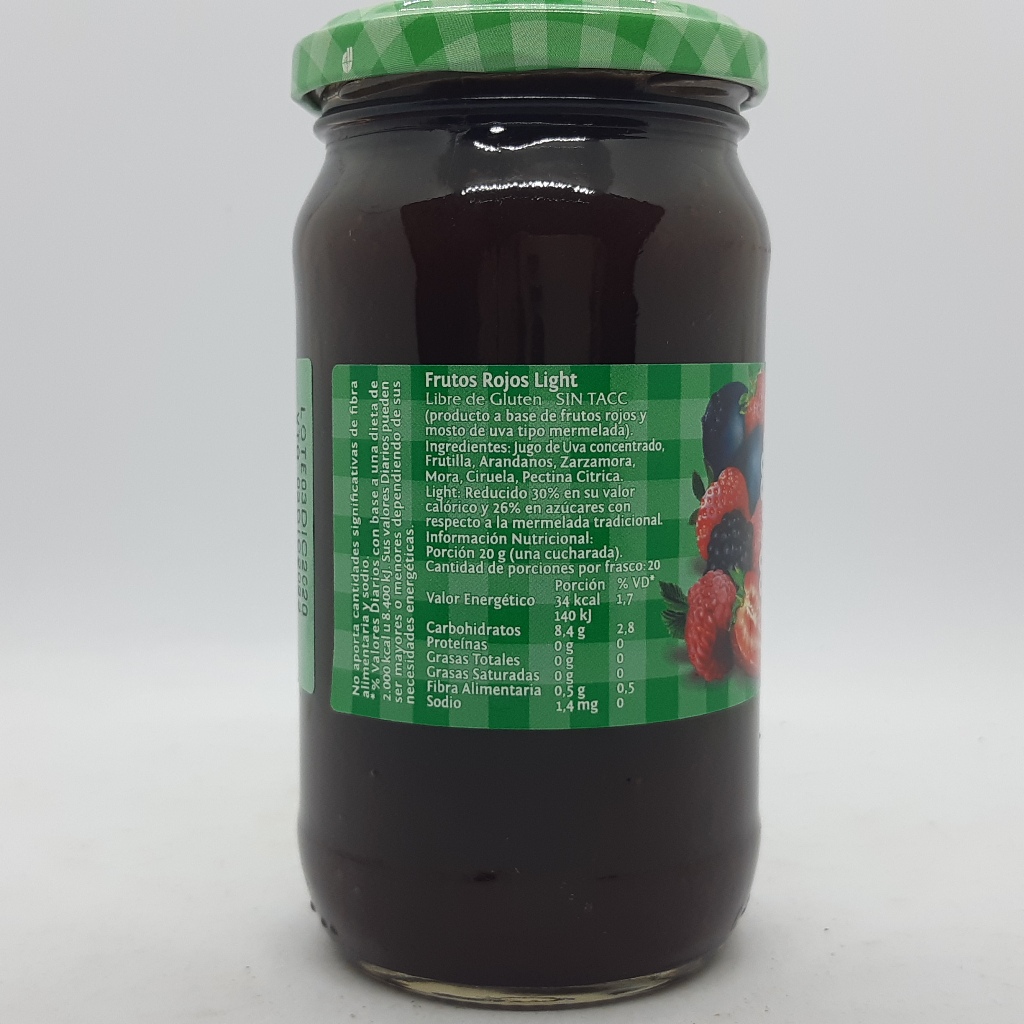 Especial y equilibrada, elaborada con la combinación de frescas frutas finas endulzadas con el mosto concentrado que se extrae de la uva. Pura fruta endulzada con fruta. SIN TACC.