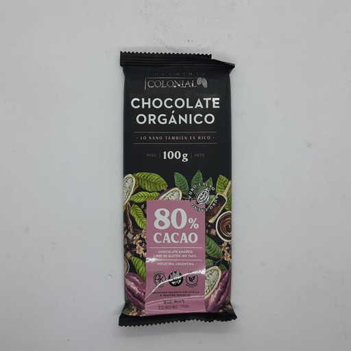 Chocolate amargo, libre de gluten. SIN TACC. Certificado orgánico por LETIS S.A.