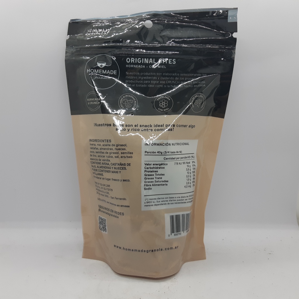 Ingredientes: Avena, almendras, castañas, nueces, miel, coco, semillas de girasol, semillas de lino.