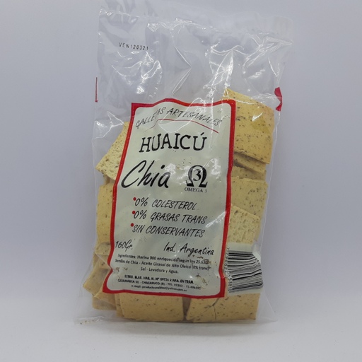 Galletitas artesanales con semillas de chia, 0% colesterol, grasas trans y sin conservantes.