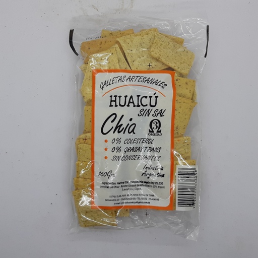 Galletitas artesanales con semillas de chia, SIN SAL, 0% colesterol, grasas trans y sin conservantes.