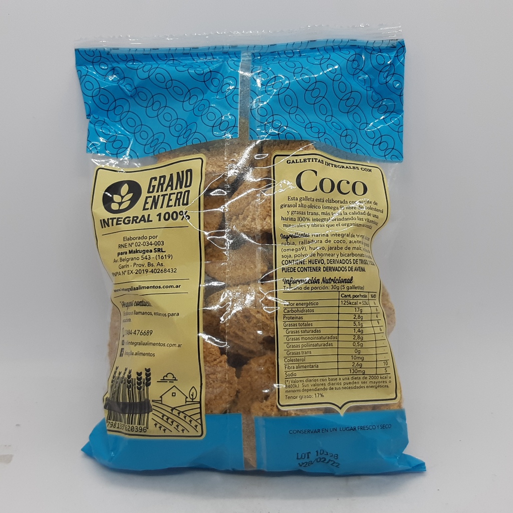 Aritos de Coco 100% harina integral, rica en omega 9, 0% grasas trans, rica en fibra.