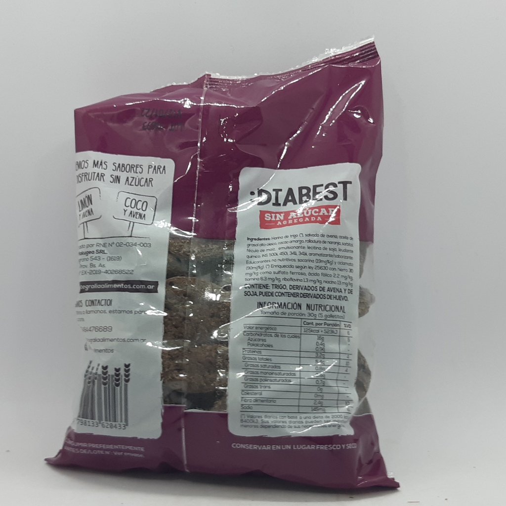 Cookies diet con Chocolate, 30% avena, ricas en omega 9, 0% grasas trans. Desarrolladas junto al LAPDI ofrecemos una alternativa confiable para aquellas personas que necesiten seguir una dieta de bajo valor glucídico. Elaboradas con 30 % avena. Ricas en omega 9. Ricas en fibra soluble. 0% grasas trans. Sin sal agregada