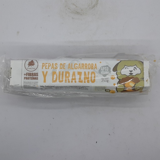 Ingredientes: Agua, harina de quinoa, harina integral, aceite vegetal, miel de caña, polvo de hornear, salvado y dulce de Durazno.