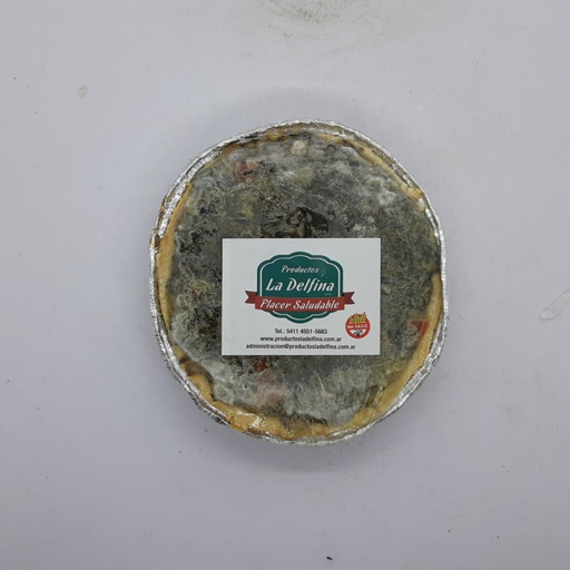 Masa de tarta con premezcla de harinas La Delfina rellena con acelga, huevos duros picados, salsa blanca y morrones picados. Presentada en plato de aluminio de 14cm lista para consumir. 0% grasas trans.