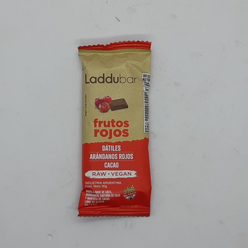 Barra a base de dátiles, arándanos rojos, cacao, manteca de cacao.
