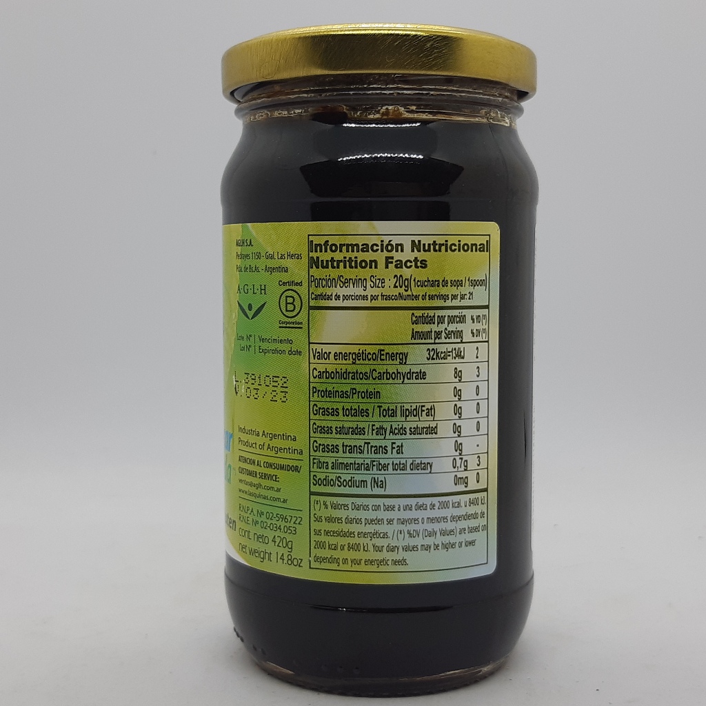 Fruta en trozos y un toque de mosto de uva para endulzar, sin conservantes, sin aditivos, sin saborizantes.