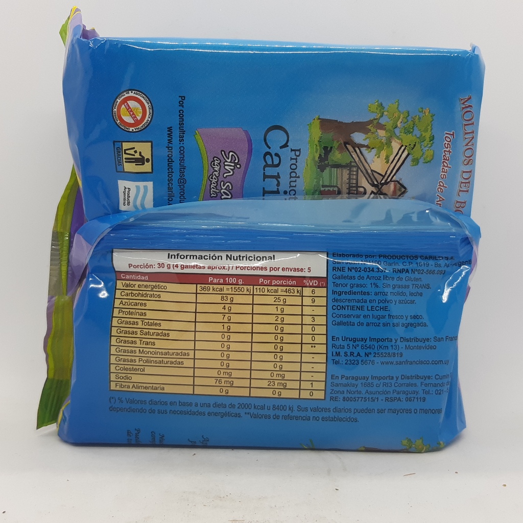 Las tostadas de arroz sin sal agregada, son ideales para dietas con bajo contenido en sodio ya que van a darle un toque diferente a todas tus comidas diarias.