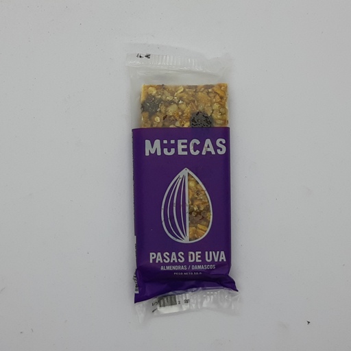 Barra de cereal con almendras, pasas de uva y damascos.