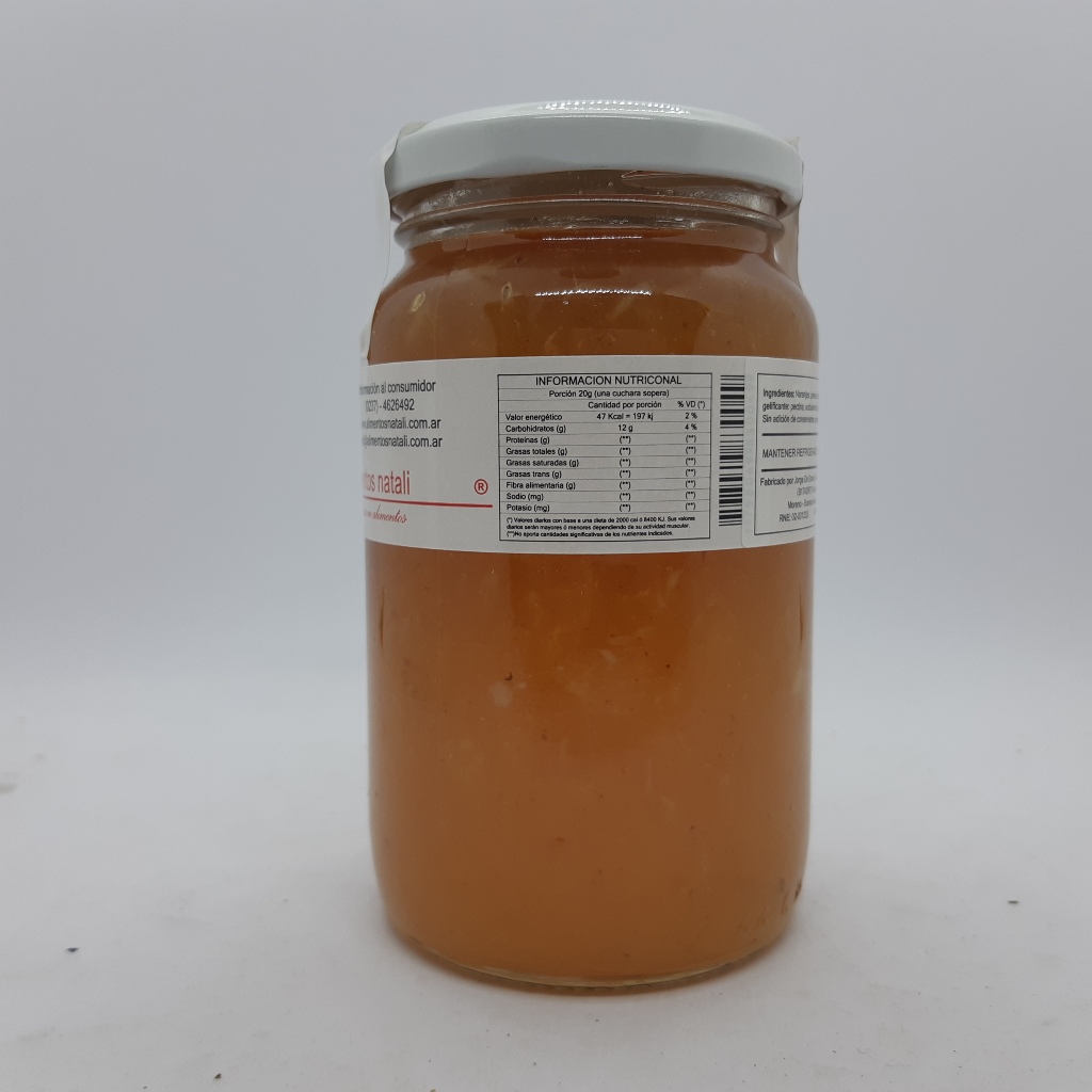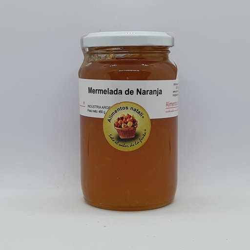 Mermelada de naranja de elaboración artesanal con pulpa de frutas seleccionadas, sin conservantes, aromatizantes ni colorantes. Sin agregado de azúcar. Contiene fructosa, no apta para diabéticos.