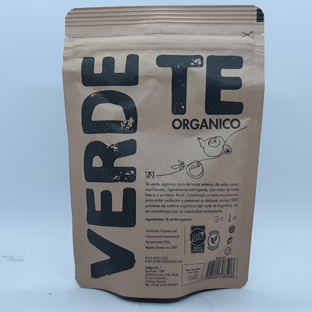 Té verde orgánico puro de hojas enteras, de sabor suave y equilibrado, ligeramente astringente, con notas de hierba fresca y un toque floral. Cosechado a mano en primavera para evitar oxidación y preservar su delicado aroma, VERDE proviene de cultivos orgánicos del norte de Argentina, que se caracterizan por su capacidad antioxidante.