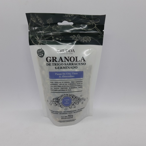Granola de trigo sarracenos germinado con pasas de uva, coco y almendras.