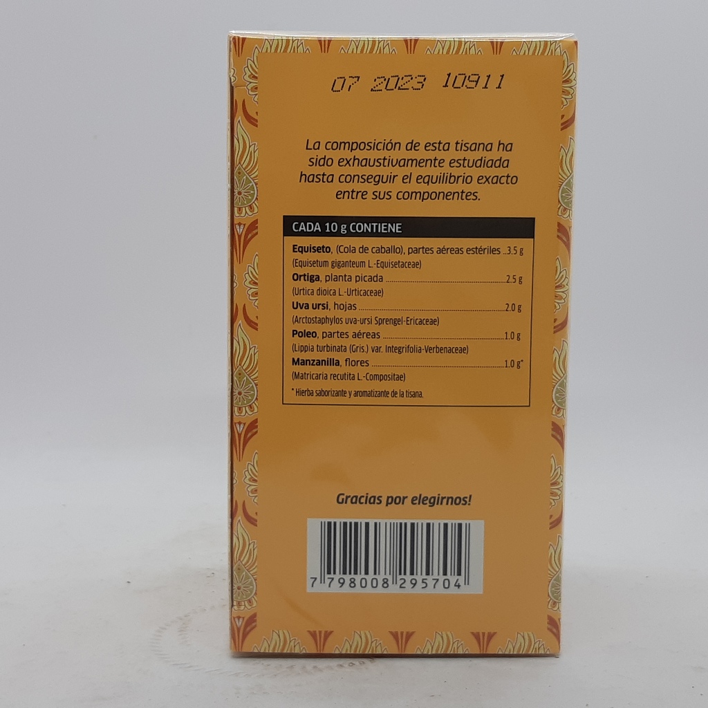 Ingredientes: Equiseto, ortiga, uva ursi, poleo y manzanilla.