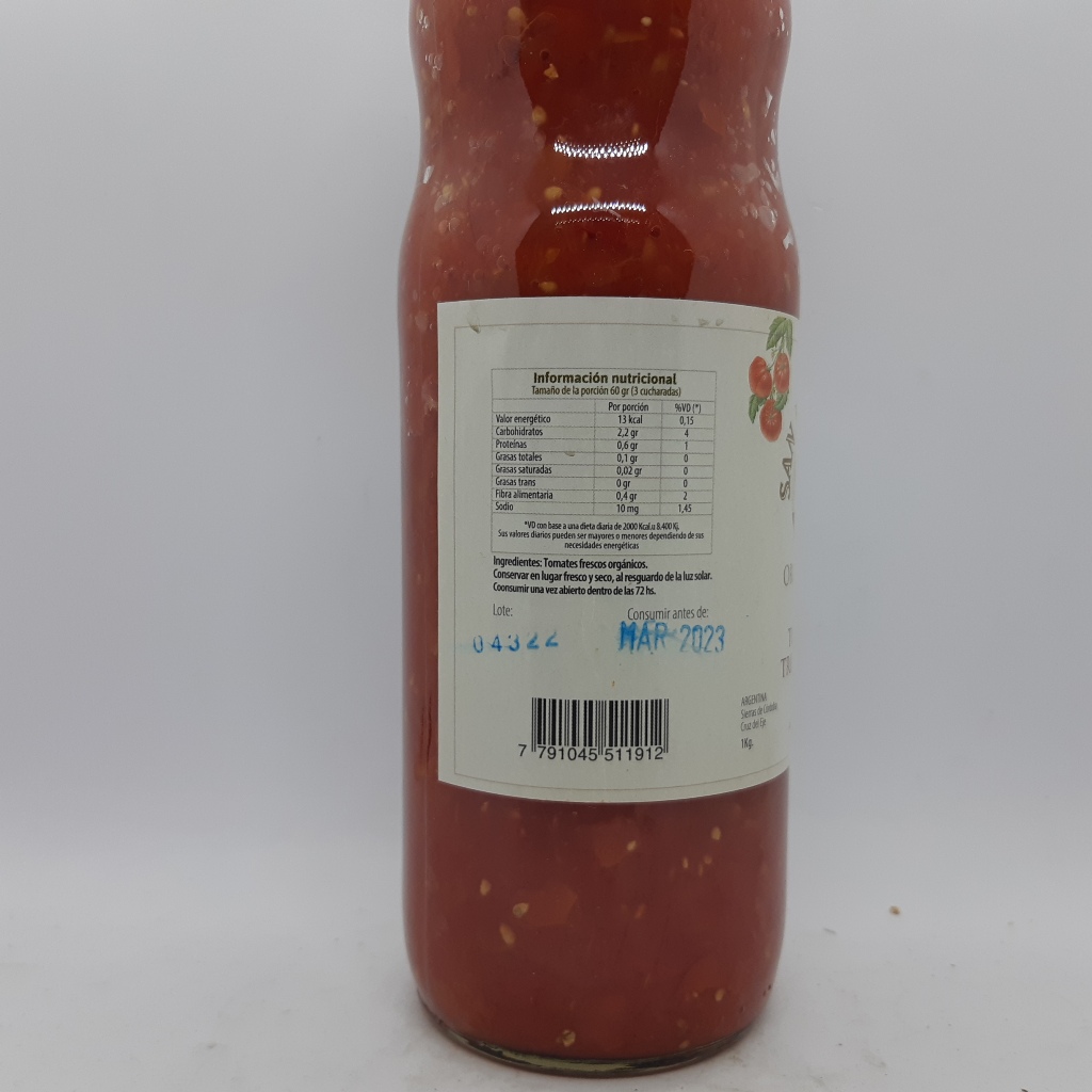 Tomates Orgánicos triturados.