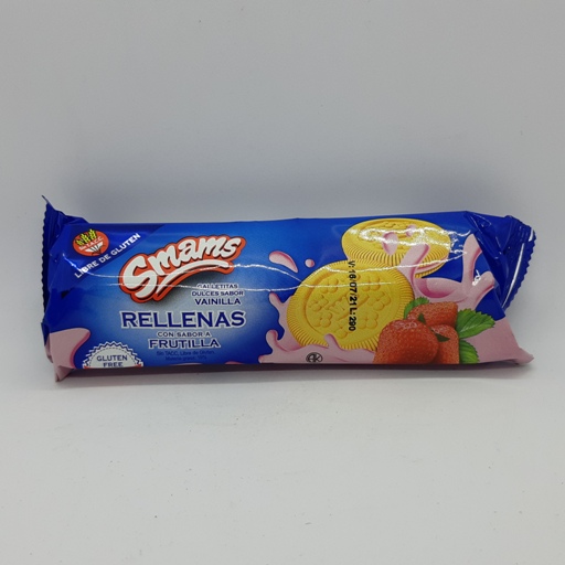 Galletitas dulces sabor vainilla con relleno de frutilla SIN TACC.