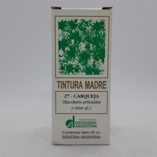 Tintura Madre de Carqueja La carqueja es la hierba hepática por excelencia, uno de sus principales beneficios es su potente acción contra los problemas hepáticos. Especialmente para aquellos que tienen problemas hepáticos como cólicos biliares, cirrosis o poca secreción biliar.Además, posee acción diurética, ayuda en las afecciones de las vías urinarias, actuando como depurativo.
