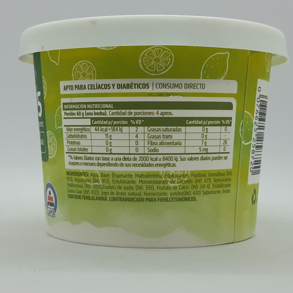 Postre helado sabor Limon. SIN TACC. Bajo en calorias.