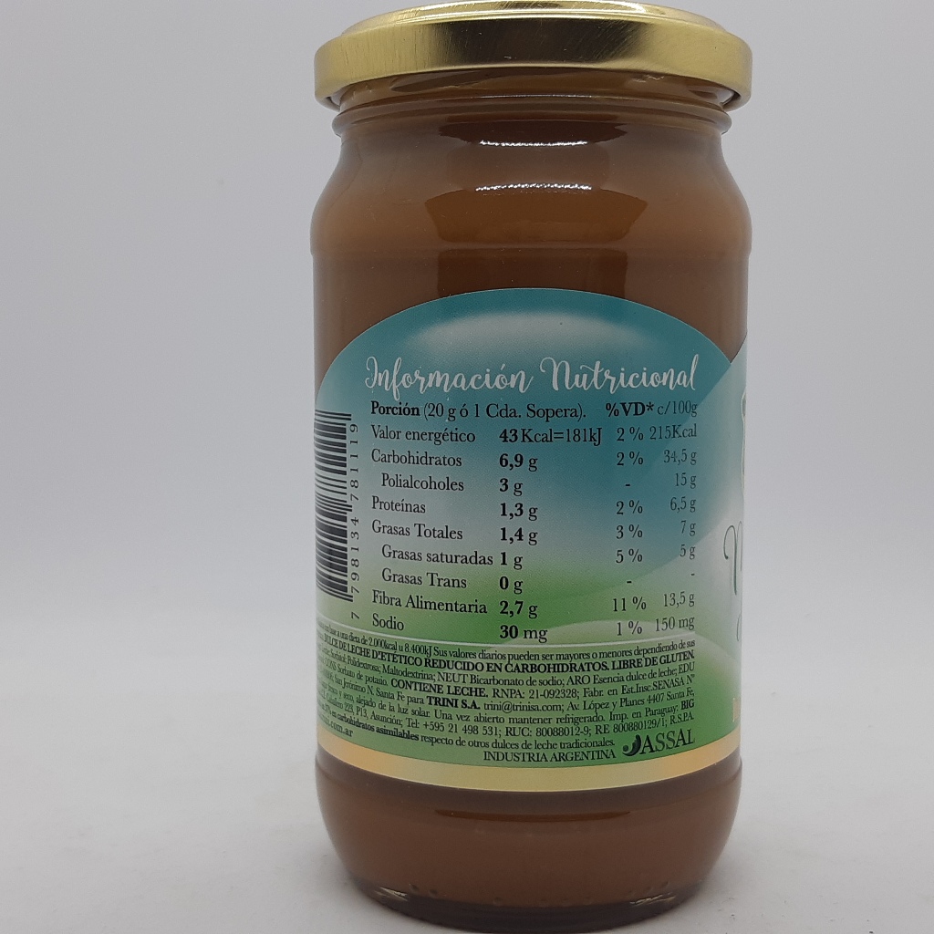 Dulce de leche endulzado con stevia, sin azúcar agregada, sin TACC.