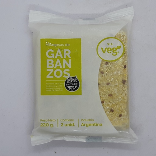 Ingredientes: Agua, garbanzos, arroz integral, rebozador sin T.A.C.C. (harina de sorgo, sal), ajo en polvo, orégano, pimienta blanca, cúrcuma y ají molido. PUEDE CONTENER SOJA.