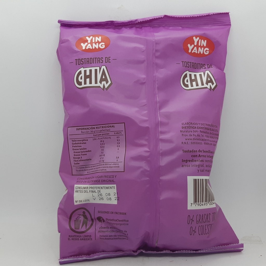 Tostaditas a base de Arroz Integral y Chía. Apto celíaco. Sin TACC. Apto Vegano.0% conservantes, colorantes y aditivos.